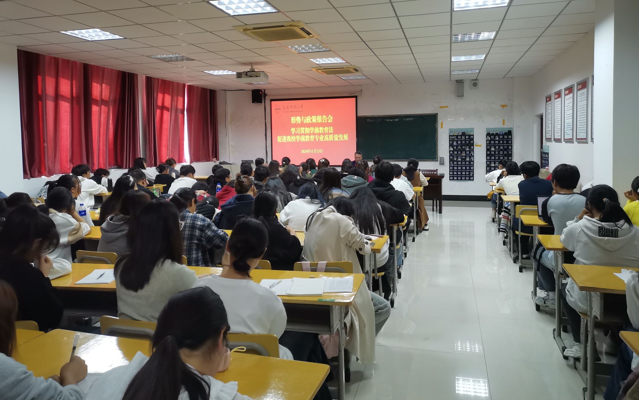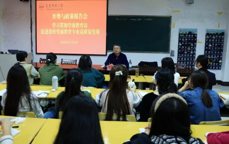 11月13日,校党委书记李福华为教育科学学院师生作《学习贯彻学前教育法,促进威尼斯官网学前教育专业高质量发展》的形势与政策报告,深入学习贯彻党的二十大和二十届二中、三中全会精神,贯彻落实习近平总书记关于教育的重要论述和全国教育大会精神,学习宣传学前教育法,推动学前教育专业认证专家反馈问题整改工作。
