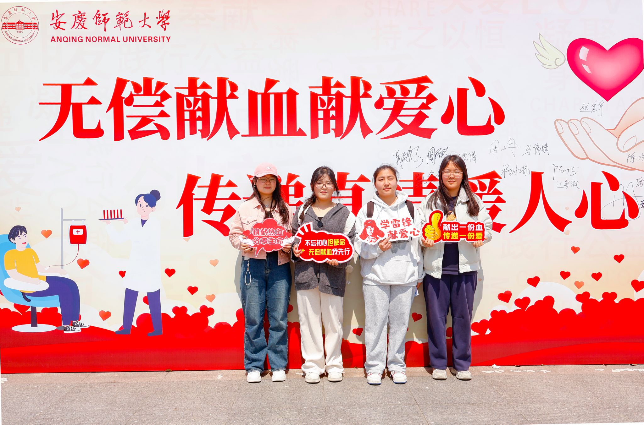 现场氛围浓厚,设有献血光荣榜、公益集市、签名墙等。活动为参与无偿献血的师生颁发《无偿献血证》《荣誉证书》,免费提供牛奶等营养品。