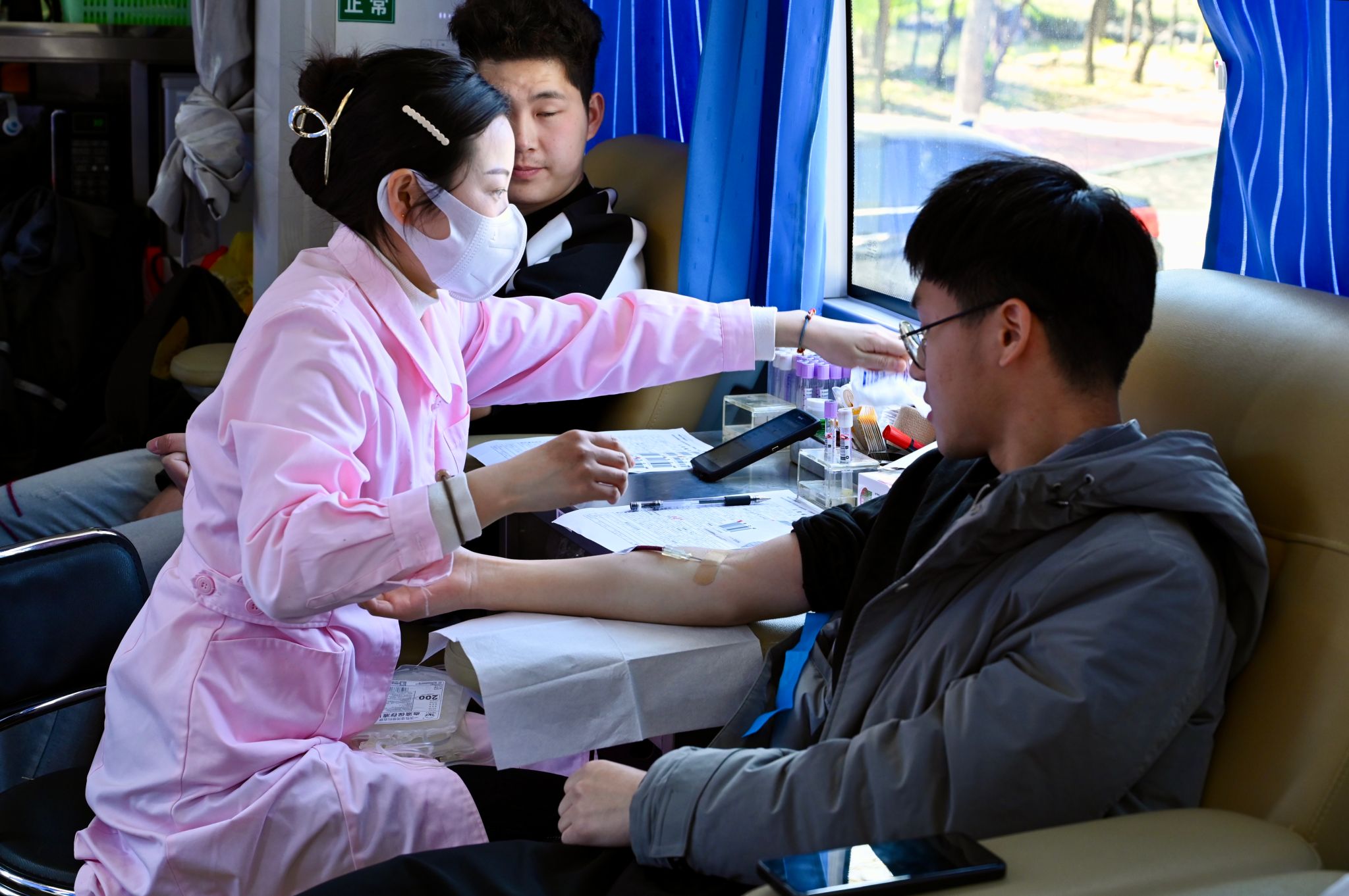 坚持锻炼身体,保证充足睡眠,注意清淡饮食……在收到活动通知后,生命科学学院的五名同学一拍即合,决定共同参加献血活动,并早早地做起了准备。当被问及为何选择参加无偿献血时,生物科学(师范)专业2023级(2)班的陈超笑着回答:“因为我们都是热血青年。”生物科学(师范)专业2023级(4)班的贺思莹献完血后表示,“看到自己榜上有名时,非常自豪。”