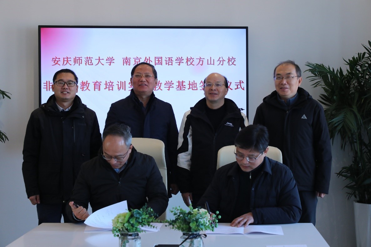 李俊详细介绍了南京方山外国语学校的办学优势、师资队伍、办学特色等方面情况。双方代表在与会人员的见证下签署了合作共建非学历教育实践教学基地协议。