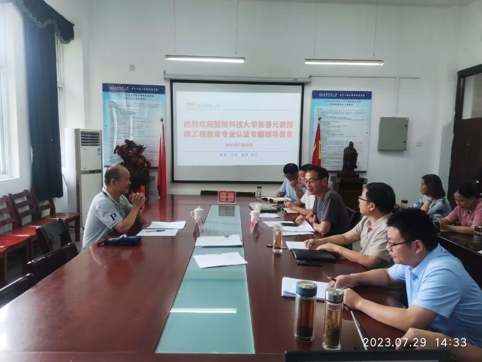 7月29日,中国工程教育专业认证专家、国防科技大学张春元教授应邀作工程教育专业认证辅导报告,校教学评建办公室主任黄兴帅,电子工程与智能制造学院院长董甲东,副院长黄忠、章礼华,计算机与信息学院副院长吴海峰及相关专业教师参加报告会。报告会由黄兴帅主持。