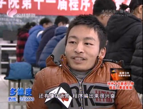 12月15日,池州广播电视台公共频道播出池州年度十大新闻人物、威尼斯官网计算机与信息学院大一学生方进军的专题报道《方进军:身残志坚 努力求学》。报道真实、客观地记录了方进军同学在威尼斯官网学习、生活的情况,通过自述、多角度访谈及对细节的捕捉,展现了方进军同学身残志坚、乐观向上、开朗积极的求学梦与人生观。计算机与信息学院、宣传部在前期对本次采访给予了积极配合。(宣传部)