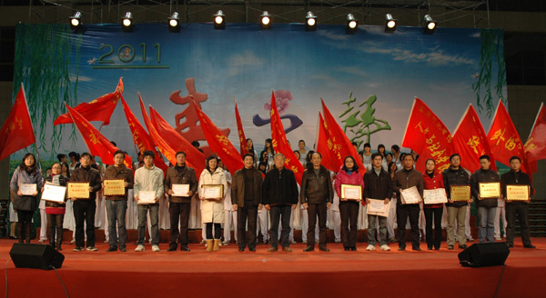 当晚还进行了2010年大学生科技文化节闭幕式,赵晓和、时新中、张群等领导为文化节获奖的同学颁发了奖状并合影留念。