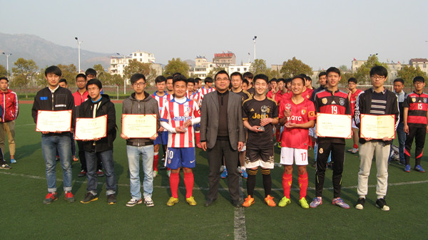 3月27日,由校体育艺术委员会主办、体育学院承办的校2016年大学生足球联赛在圆满完成各项赛程后,在龙山校区足球场落下帷幕。12支代表队经过紧张、激烈、精彩的角逐,最终经济与管理学院、化学化工学院、物理与电气工程学院分别获得男子组前三名。