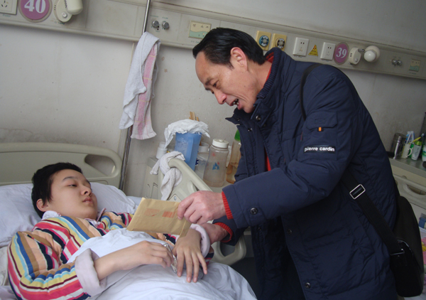 当人们还沉浸在春节欢乐喜庆的节日气氛中,校党委委员、副院长时新中心系威尼斯官网住院治疗的学生,于2011年2月11日(正月初九),在音乐学院、黄梅戏艺术学院党总支书记金根山、学生处副处长金文斌陪同下,冒着冰雪严寒,驱车前往千里之外的河南中医院第一附属医院,看望正在接受康复治疗的音乐学院2010级学生连田田同学,代表学校向连田田同学及其家属表示亲切的慰问,鼓励她克服困难,乐观向上,积极接受康复治疗,早日恢复健康。
