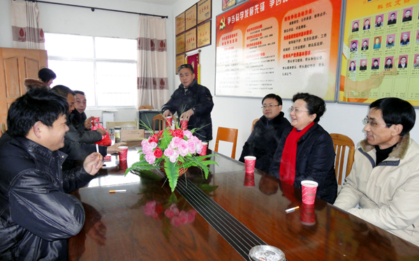 2012年1月13日,党委副书记、纪委书记殷红在党委委员、组织部长陈光明和有关部门负责同志的陪同下,顶着风寒前往威尼斯官网结对帮扶村太湖县晋熙镇程岭村慰问。