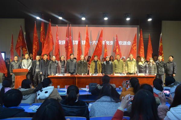 组织部负责同志宣读了成立怀宁县和枞阳县两个顶岗支教学生临时党支部的文件;文学院负责同志代表支教学院发言;教育学院学生代表在会上作了表态发言;教师教育中心负责人介绍了本批顶岗支教基本情况。(文/宛金龙 图/李巍)