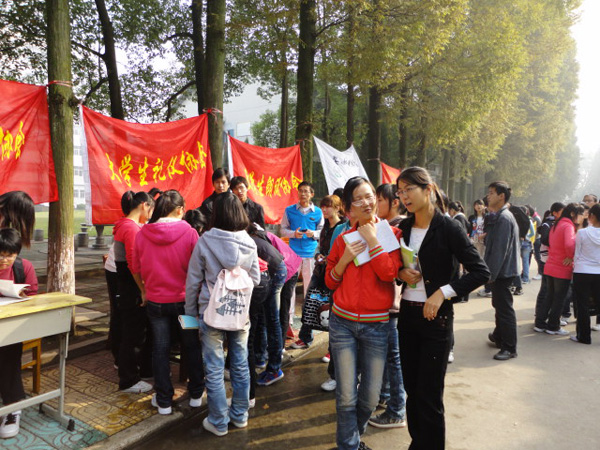 热闹的招生和咨询场面,新同学那一张张稚气的脸和现场的工作人员认真的解答,构成了一幅幅生动的画面。“会长们都很热情,很耐心,解答我们提出的各种问题,我们对社团文化有了更感性的认识。”新生们高兴的对学生记者说。