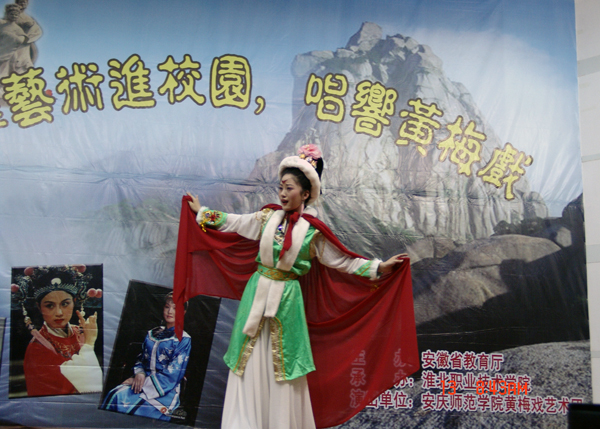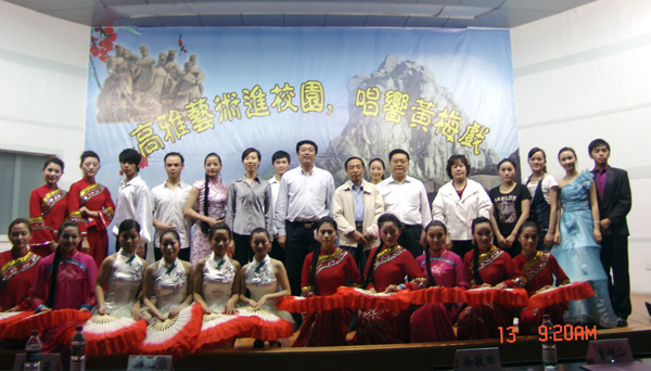 根据省教育厅安排,在学校领导的高度重视和支持下, 5月9至14日,校黄梅剧艺术团在黄梅剧艺术学院院长、音乐学院党总支书记金根山的带领下,参加“高雅艺术进校园”活动,分别赴宿州和淮北两地,先后在宿州学院、宿州职业技术学院、淮北师范大学和淮北职业技术学院四所高校公开演出,取得圆满成功。