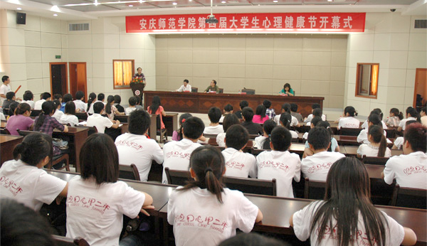 时新中副院长随后宣布安庆师范学院第四届5•25大学生心理健康节开幕。开幕式上,学生处金文斌副处长致开幕辞。