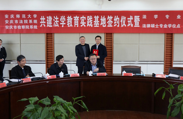 张群代表威尼斯官网分别与安庆市中级人民法院和安庆市人民检察院签署了共建法学教育实践基地合作协议。