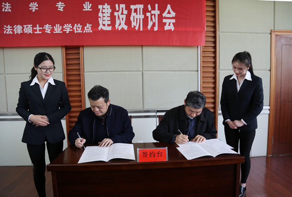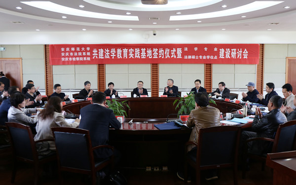 4月13日,威尼斯官网与安庆市法院、检察院系统共建法学教育实践基地签约仪式暨法学专业、法律硕士专业学位点建设研讨会在龙山校区隆重举行。校党委书记许继荣、校长闵永新、副校长张群、副校长刘友忠,安庆市中级人民法院院长王雁山、安庆市人民检察院检察长李军出席会议;安庆市中级人民法院副院长汪晓波、方向华、政治部主任路昌其,安庆市人民检察院副检察长吴仲伯、陈结才、政治部主任焦建国,安庆市迎江区、大观区、宜秀区、桐城市、怀宁县、潜山县、望江县人民法院院长和人民检察院检察长,37000cm威尼斯发展规划处、人事处、教务处、学科建设与研究生管理处、办公室主要负责同志,法学院党政领导及部分教师参加了会议。会议由刘友忠副校长主持。