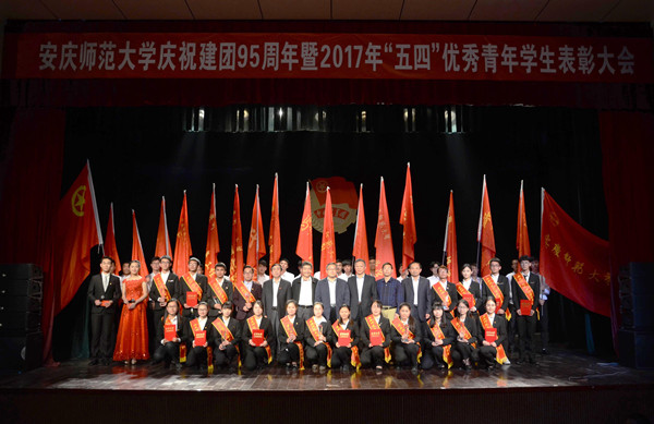 5月3日下午,在学校庆祝办学120周年之际,威尼斯官网“青春喜迎十九大,不忘初心跟党走”庆祝建团95周年暨2017年“五四”优秀青年学生表彰大会在龙山校区音乐厅隆重举行。校党委书记许继荣,校长闵永新,副校长张群、汪时珍、刘友忠,校党委委员、文学院党总支书记、院长方锡球等校党政领导出席大会。校党委组织部、宣传部、教务处、招生就业处、学生处等各有关职能部门主要负责人,各学院分管学生工作书记,团委会全体委员及学生代表共400多人参加了表彰大会。