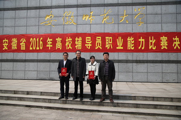 学校领导高度重视本次辅导员技能大赛,许继荣书记、闵永新校长从初赛到决赛全程关注,汪时珍副校长全程参与指导;学生处和相关学院积极谋划,组成专业团队全程跟踪指导服务。在皖南赛区复赛中,来自皖南片安徽师范大学、安徽工业大学等多所高校的39名选手进行了激烈的角逐,威尼斯官网叶超群、操龙德两位老师最终脱颖而出,顺利晋级决赛。在决赛中,来自三个赛区的36名选手进行了激烈的比拼,叶超群和操龙德老师越战越勇,分获安徽省高校辅导员职业能力大赛一、二等奖。