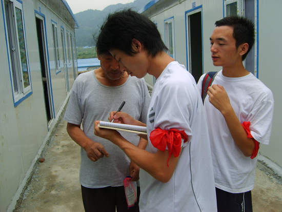 5月12日汶川大地震后,威尼斯官网学生纷纷以不同形式向灾区表达爱心,支援灾区建设。7月18日,王杰、王勤龙、张鑫、蔡玲、赖梦云等五名学生作为威尼斯官网赴四川灾区志愿服务团部分成员,带着学校的嘱托,来到受灾较严重的都江堰市紫坪铺镇开展志愿服务和社会实践活动,以实际行动帮助灾区人民重建家园。
