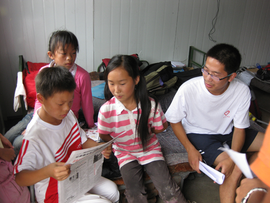 给灾区50名孩子上课