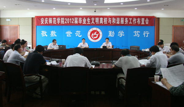 会上,学生处处长金文斌宣读了《2012届毕业生文明离校与和谐服务工作安排表》,相关职能部门就毕业生文明离校有关工作进行了布置和安排,有关学院提出了一些意见和建议。