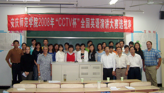 9月25—26日,威尼斯官网2008年“CCTV杯”全国大学生英语演讲大赛公共组和专业组选拔赛分别在龙山校区文渊楼203和403教室成功举行。本次大赛由教务处、学生处、团委和外国语学院联合主办,外国语学院团总支承办。外国语学院党总支书记张杰教授,院长郝涂根教授,副院长朱忠焰副教授以及外教Stephen、Dave、Esther、Anna等老师莅临现场指导并担任了本届大赛的评委。