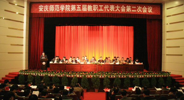 大会在雄壮的《国歌》声中拉开了序幕。党委副书记、院长汪青松同志在会上代表学校行政班子作了题为《振奋精神 求真务实 促进学校事业又好又快发展》的院长工作报告。汪院长对五届一次教代会以来的学校工作进行了全面总结。他指出,自五届一次教代会以来,全校深入学习贯彻党的十七大精神,贯彻落实科学发展观,实施质量工程,扎实开展效能建设,以教学为中心,以育人为根本,继续推进“三大战略”,精心打造“三大工程”,着力建设“三大校园”,不断深化改革,加快发展,学校各项事业都取得了长足进展:质量工程取得五项国家品牌,办学水平迈上新台阶;“四成”教育理念不断深化,人才培养质量进一步提高;效能建设初见实效,管理工作不断规范;安全稳定常抓不懈,“三大校园”建设成果丰硕;办学条件不断改善,办学规模进一步扩大。
