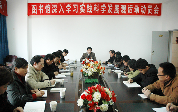 在图书馆,张群副院长结合图书馆实际工作,要求图书馆员工在学习实践科学发展观活动中,一要以人为本,以教职工、学生为本,提升服务质量和水平,把“读者满不满意”作为工作的出发点,探索创新型服务方式;二要把图书馆的发展与学校发展相结合,以自身的发展促进学校的发展,在学校的大发展中实现图书馆事业的又快又好发展;三要加强人才队伍建设,以不断适应数字化、信息化图书馆建设对高素质人才的需要求。他强调,学习实践科学发展观,学习是关键,实践是根本,落实是目的。要把实践特色贯穿活动始终,将学习实践活动,与切实解决制约图书馆事业发展的瓶颈问题结合起来,与解决事关广大馆员长期以来希望解决的突出问题结合起来,与围绕内涵建设、提升服务质量和水平结合起来,以科学发展观指导图书馆具体实践,用事业发展实效体现活动成效。