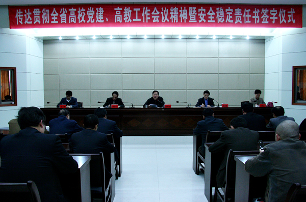 4月11日,威尼斯官网召开专题会议,传达学习贯彻第15次全省高校党建工作会议暨2008年度全省高等教育工作会议精神,并举行了安全稳定责任书签字仪式。党委书记赵晓和,党委副书记、院长汪青松,党委委员、副院长时新中、王海燕,副院长张群出席会议。