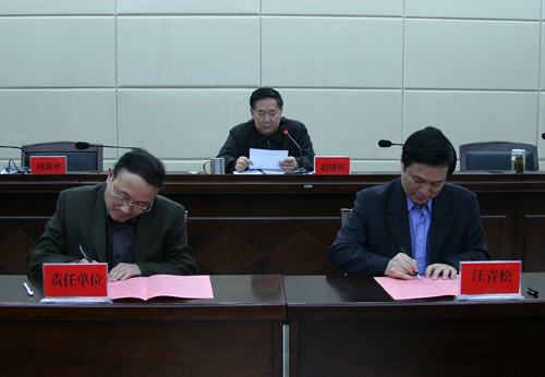接着,会议举行了安全稳定责任书签字仪式。汪青松同志与各院系、各机关单位主要负责同志签订了安全稳定工作目标责任书。
