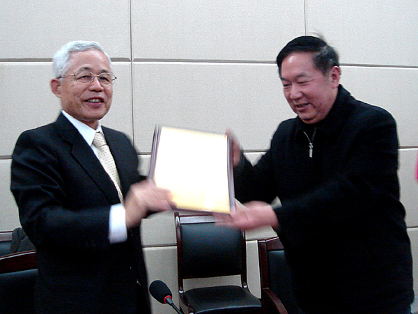 仪式上,赵晓和书记向久富真志先生颁发了捐赠证书。