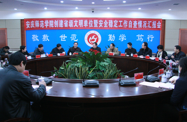 12月18日,在省委教育工委社政处副处长杨建华带领下,由安徽财经大学宣传部长赵大为、安徽师范大学保卫处长李贺林、合肥师范学院团委书记吴文等专家组成的检查组一行四人来威尼斯官网检查创建省级文明单位暨安全稳定工作。