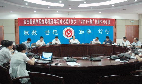9月26日下午,党委理论学习中心组召开扩大会议,专题学习《高等学校创新能力提升计划》(简称“2011”计划)。党委书记何小祥,党委副书记、院长朱士群,党委委员、副院长闵永新、张群、汪时珍、刘友忠,党委委员、党委组织部部长陈光明、文学院院长方锡球等领导出席会议。党委副书记、纪委书记殷红因公学习未出席会议。党委宣传部、党校、教务处、科研处、学科建设与研究生处、人事处、财务处等部门负责同志,各学院党政负责人参加了会议。