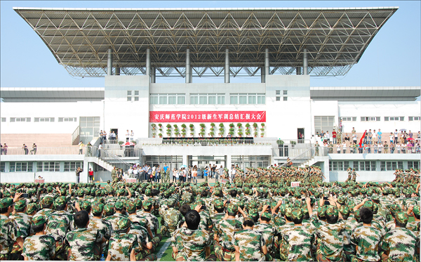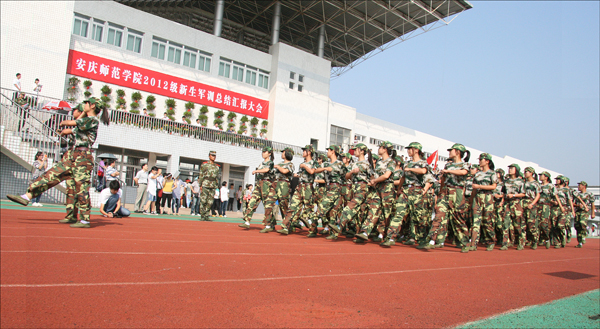 何小祥书记在武警支队领导的陪同下检阅了军训学员。朱士群院长代表学校向安庆市武警支队赠送了锦旗。闵永新副院长做军训总结讲话,他首先代表学校党委、行政班子,向承担军训任务的武警安庆市支队广大官兵指战员表示最衷心的感谢!向辛勤工作的指导员、辅导员和后勤保障的同志们表示最诚挚的谢意!对刻苦参练的全体同学表示最亲切的慰问。他希望新同学们要树立国防意识,增强爱国主义情感;树立纪律意识,保持团结紧张、严肃活泼的优良作风;树立责任意识,不断加强校风和学风建设;秉承“敬敷世范,勤学笃行”的校训精神,快乐成长,健康成人,励志成才,走向成功,把自己造就成祖国和人民需要的栋梁之才。