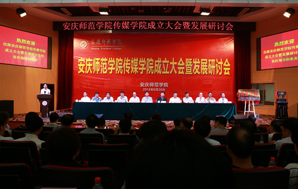 9月28日上午,安庆师范学院传媒学院成立大会暨发展研讨会在图书馆东报告厅举行。校党政领导何小祥、闵永新、汪时珍、刘友忠、陈光明、方锡球,华东师范大学博士生导师、传播学院院长严三九教授,《联合时报》总编辑、高级记者邓的荣,安庆师范学院校友会上海校友会副秘书长叶波,安庆日报社党委书记、社长、总编刘刚,安庆广播电视台党委副书记、总编辑、副台长吴松等出席会议。校内各学院、职能部门负责同志,传媒学院全体师生参加会议。会议由学校副院长张群教授主持。