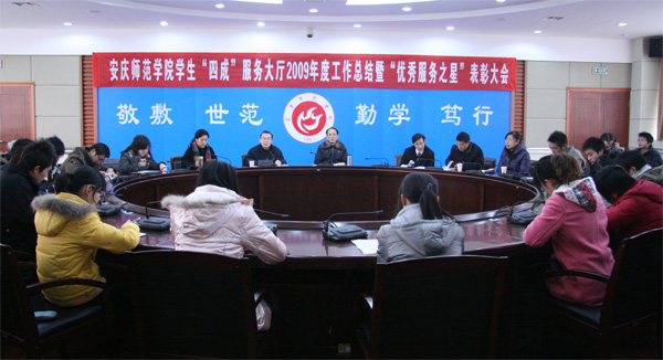 会上,学生“四成”服务大厅主任徐胜荣同学对学生“四成”服务大厅2009年度工作进行了总结。学生处副处长万鹏飞宣读了学生“四成”服务大厅2009年度 “优秀服务之星”表彰决定。2009年度“优秀服务之星”代表张燕同学做了题为“忙碌的大厅,温馨的家”的交流发言。(文/许俊杰 图/陈东)