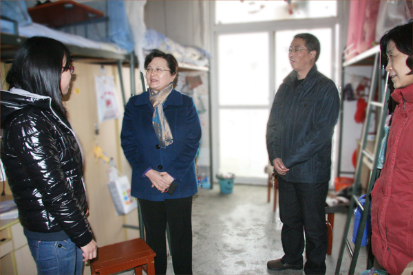 殷书记代表学校向小汪同学表示亲切的慰问,并送上了慰问金。小汪同学从小父母双亡,和姐姐相依为命,家庭经济十分困难。殷书记在现场听取学院负责同志对小汪同学在校学习和生活情况的汇报后,关切地说:“学校就是你的家,任何时候都不要感觉自己是在孤军奋战,学校是你坚实的后盾,生活中有困难及时和老师沟通。希望你能克服暂时的小困难,继续努力学习,取得好成绩”。殷书记和蔼可亲的叮嘱让小汪同学的心里感觉很温暖,她说:“自从来到安庆师范学院,我就受到学校的关爱和照顾,生活上没有了后顾之忧,学习上也感觉得心应手。请领导放心,我一定不辜负你们的期望,好好学习,将来找个好工作,也为学校争光”。