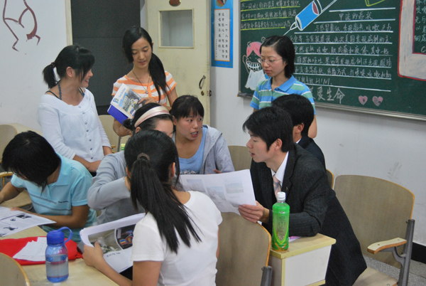 9月27下午,外国语学院学生试讲初、高中英语教材活动迎来了一群特殊的指导教师——39名在威尼斯官网接受培训的望江县中学英语骨干教师。活动中,39名骨干教师分成8个小组,对08级学生试讲初、高中教材进行观摩、指导并与学生开展了交流讨论。骨干教师们在认真听完学生模拟授课后,结合中学英语教学实际和新课改的要求,对学生的教学设计和教学过程进行了点评。在与学生交流讨论过程中,指导教师耐心解答了学生提出的如何确定教学重难点、如何激发学生学习兴趣等具体问题,并将日常教学积累的宝贵教学经验传授给学生。活动结束后,学生纷纷表示受益匪浅。