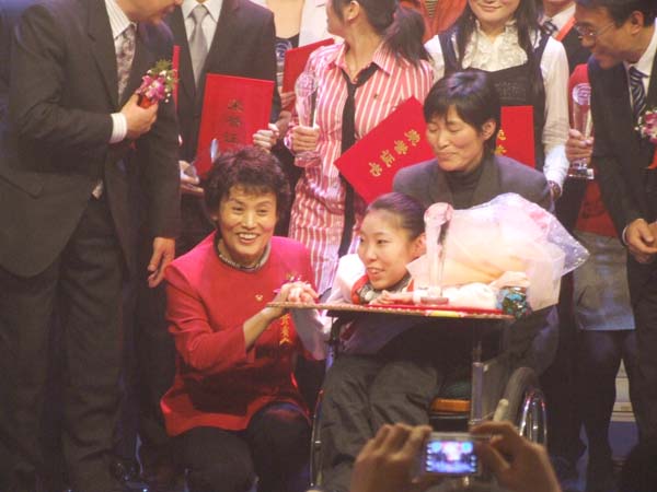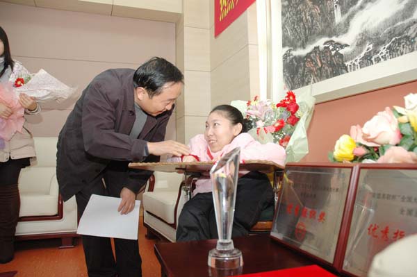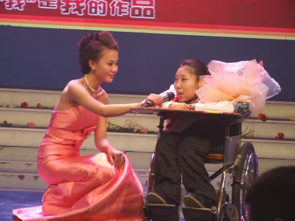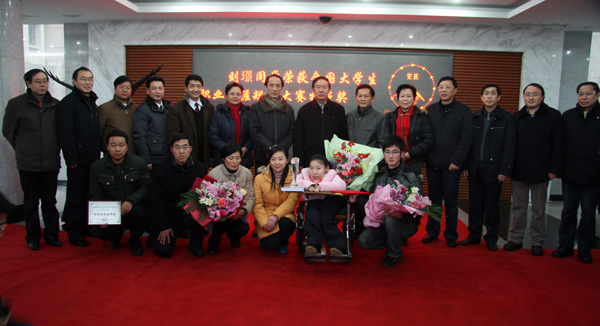 在全国总决赛比赛现场,威尼斯官网06级英语专业学生刘璟身残志坚,以“让心去走”为主题展示职业生涯规划,展示了一位全身90%以上部位瘫痪的大学生如何经过不断的努力,一步步成长为一名翻译工作者的追梦之路。2009年,刘璟克服常人难以想象的困难,翻译了美籍华人聋盲女作家雪莉•程的作品《公主传奇》,该书达10万余字,已于今年12月初由安徽大学出版社出版,安徽省残联主席张纯和为其译作致辞“没有播种,何来收获;没有辛劳,何来成功;没有磨难,何来荣耀;没有挫折,何来辉煌”。刘璟同学积极乐观的生活态度、坚忍不拔的精神品质感染着每一个见证了比赛过程的人。刘璟同学的表现赢得了评委的认可,同时也收获了所有参赛选手的友谊。在PPT展示环节,资深职业指导专家、评委组组长、中国青年政治学院副院长李家华称赞刘璟的规划展现了当代大学生自强不息,顽强拼搏,立志成才的精神风貌,同时评价刘璟的职业规划蓝图“开阔了职业规划研究的视野,延伸了职业规划的模式,丰富了职业规划的内涵”。在场的评委、选手、观众全体起立,用热烈的掌声为刘璟的坚强、坚毅和出色表现喝彩,表达敬意,时间长达三分钟之久。在比赛的四个环节中刘璟以近乎完美的表现获得了评委的一致认可,并以绝对优势获得大赛的唯一特等奖。在颁奖典礼上,教育部党组成员、部长助理林惠青女士亲自为刘璟颁奖,并鼓励刘璟在以后的生活学习中取得更大的成功,祝愿刘璟翻译出更多更好的作品。