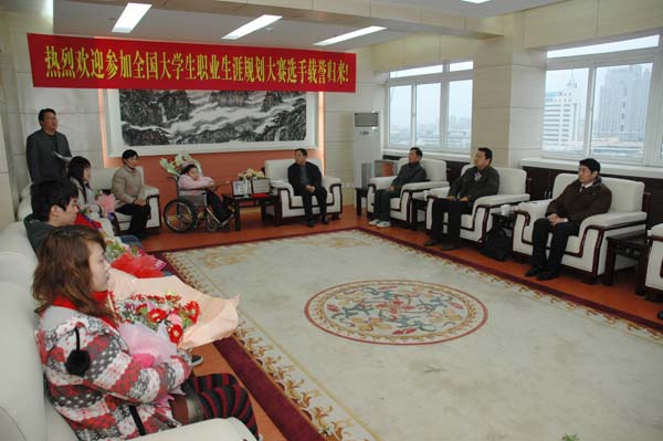 刘璟的坚韧品格和自强不息的精神还吸引了众多媒体的关注,中央电视台、中国教育电视台、中国教育报、中国教育网、安徽电视台、新安晚报、安徽商报、安庆电视台等媒体都对刘璟的事迹进行跟踪报道。据悉,中国教育电视台正在制作本次全国职业生涯规划大赛总决赛20集专题片,并将于近期安排播出。(文/朱灵群 图/蔡彬 陈东)