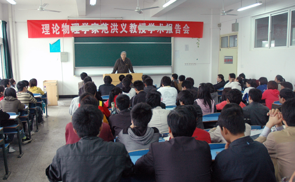 范教授报告题目为“量子力学表象及变换新论”。范教授以其夯实的数学基础,严密的逻辑推理,介绍了由其创造发明的有序算符内的积分理论,使牛顿—莱布尼兹积分从以前的只适用于经典函数发展到可用于对Dirac符号组成的算符积分,使量子力学的表象与变换理论得到别开生面的发展。范教授报告思维活跃、思路创新、推理严密。他对知识的执着追求,对问题的大胆假设,对科学的无限探索精神发人深省,让在座师生得到了很大的教育。