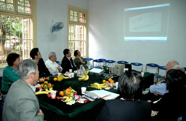 会上,民盟支部盟员集体收看了大型历史文献纪录片《沧桑巨变》第十集“继往开来”并进行座谈。片中祖国60年艰辛探索的风雨历程,改革开放30年的飞跃发展、以及5.12汶川地震中众志成城、应对世界金融风暴、成功主办北京奥运等一个个震撼人心的画面,深深感动着每位盟员。已是86岁高龄的老盟员沈荣亮先生情绪激动地说:“从片中看出,我们有今天的幸福生活来之不易。要记住列宁所说的:忘记过去就意味着背叛。一定不能忘记过去的成就。”他还回顾了民盟的光荣历史和盟员英烈,叮嘱年轻的盟员们要记住艰苦创业的老前辈们。今年新入盟的外国语学院青年教师权循莲表示:作为新盟员,将会继承民盟的光荣传统,不断学习探索,为民盟的发展和学校的教学科研尽绵薄之力。