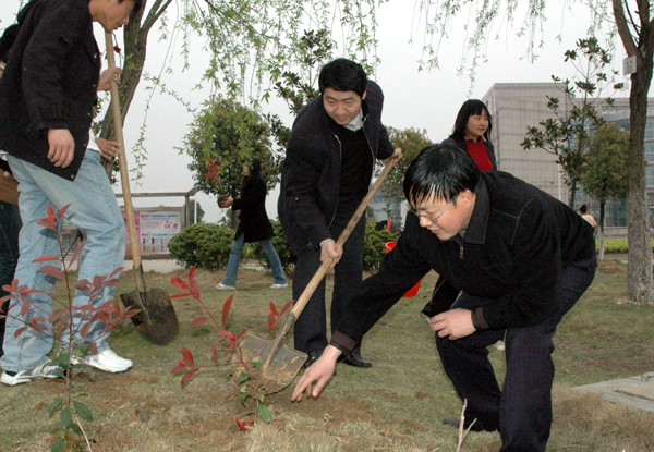 活动中,校领导率先示范,挥铲培土、浇水育苗;学生代表们在校团委的带领下积极投身植树活动,扶苗、填土、踩实;师生们情绪高涨、干劲十足,短短两个小时的时间,沿湖就栽满了红叶石楠的幼苗,圆满完成了移栽任务。