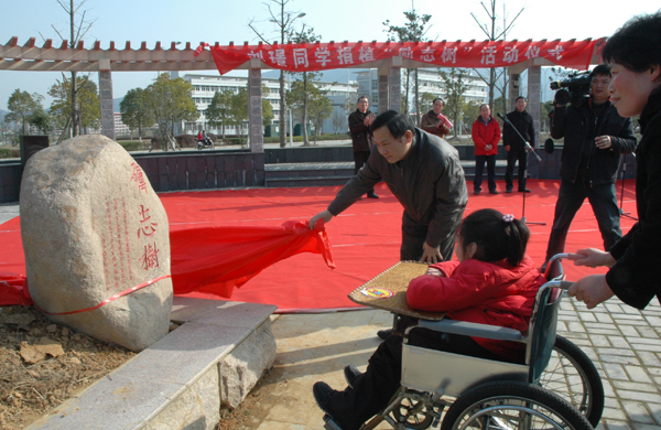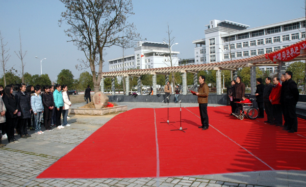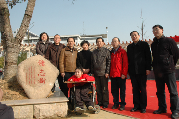 3月12日,阳光灿烂、微风和煦,正是一年一度的植树节。上午9时,威尼斯官网龙山校区行政楼北侧举行了一个简短而又热烈的捐植仪式。外国语学院06级学生、有着“安徽张海迪”之称的刘璟,为感谢母校的培养、老师的培育,为学校捐赠了一棵石楠树,被命名为“励志树”。 党委副书记、院长朱士群教授和刘璟同学共同为“励志树”揭牌。