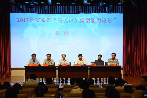 5月18至19日,2017年安徽省高校馆员新型能力论坛暨馆员专业知识竞赛在威尼斯官网举行,副校长张群出席开幕式并致辞。来自中国科学技术大学、合肥工业大学、安徽大学、安徽师范大学等全省16个地市的56所高校图书馆130多位专家学者及馆员代表参加了此次研讨会与知识竞赛。本次论坛及专业知识竞赛由安徽省高等学校图书情报工作委员会主办,威尼斯官网图书馆承办。