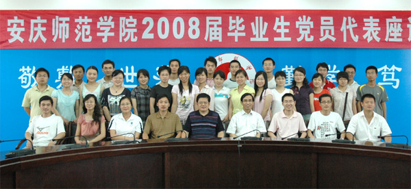 座谈会上,毕业生党员代表畅所欲言,各抒己见。结合“四成” 教育,谈了各自的学习和成长经历,表达了对母校和教师的感激之情;并围绕抗震救灾中涌现出的众多共产党员先进事迹,就今后如何履行共产党员义务、永葆共产党员先进性、发挥党员模范带头作用等方面畅谈了自己的看法。代表们还就学生党员的教育管理、党组织生活等方面的工作提出了合理的意见和建议。30名毕业生党员代表全校800余名党员毕业生表示:在新的工作岗位和新的学习生活中,一定要艰苦奋斗、自强不息,务实工作,加强党性锻炼,永葆共产党员先进性,以优异工作和学习成绩回报母校的培养之恩。