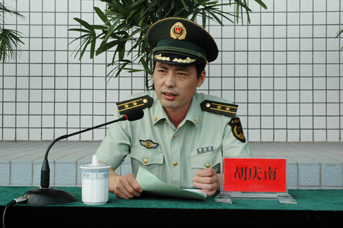 武警安庆支队副支队长胡庆南作军训要求