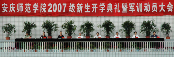 武警安庆支队副支队长胡庆南对全体军训教官和参训同学提出了军训的具体要求;教师代表教育学院院长曹长德、人文与社会学院院长程曦和新生代表也在开学典礼上作了发言。