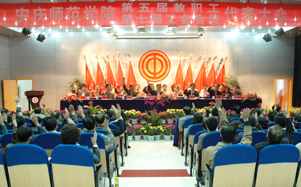 会上,还通过了《安庆师范学院第五届教职工代表大会暨第七届工会会员代表大会选举办法》,通过了总监票人、监票人名单,宣布了总计票人、计票人名单,宣布了第五届教代会执委会委员和第七届工会委员会委员选举结果和当选人名单,选举了教代会提案工作委员会、工会经费审查委员会和女教职工委员会委员;会上还通过了《关于〈“两代会”工作报告〉的决议》、《〈关于2006年财务决算和2007年财务预算及运行情况的报告〉的决议》、《〈关于加强效能建设工作的意见〉的决议》和《关于〈工会经费审查报告〉的决议》。