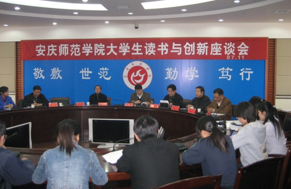 11月14日下午,国家大学生文化素质教育基地办公室、学生处、团委在龙山校区行政楼二楼报告厅组织召开大学生读书与创新座谈会。基地建设委员会副主任、副院长张群教授出席会议。各院系学生代表、辅导员代表、基地办公室及“双读”部全体成员共100多人参加了会议。会议由基地办公室主任张国定教授主持。