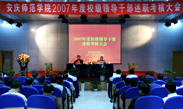 校党委书记赵晓和,党委副书记、院长汪青松,党委委员、副院长时新中,党委委员、副院长王海燕,党委委员、纪委书记殷红等五位校领导分别在会上进行了述职,威尼斯官网原党委委员、副院长、现任宿州学院党委书记储国定通过书面形式进行了述职。各位校级领导认真回顾总结了2007年度学习、工作、思想、生活(德、能、勤、绩、廉)等方面情况。参会人员本着实事求是、客观公正的原则,以无记名的方式对六位校级领导干部进行了民主测评和评议。