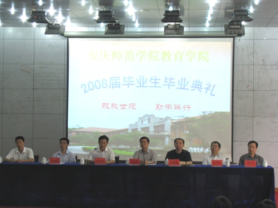 6月18日下午,教育学院2008届毕业生毕业典礼在菱湖校区图书馆学术报告厅隆重举行。校党委副书记、院长汪青松教授出席了典礼并作了重要讲话。教育学院党政领导,教师代表,毕业班辅导员以及180余名毕业生参加了此次活动。