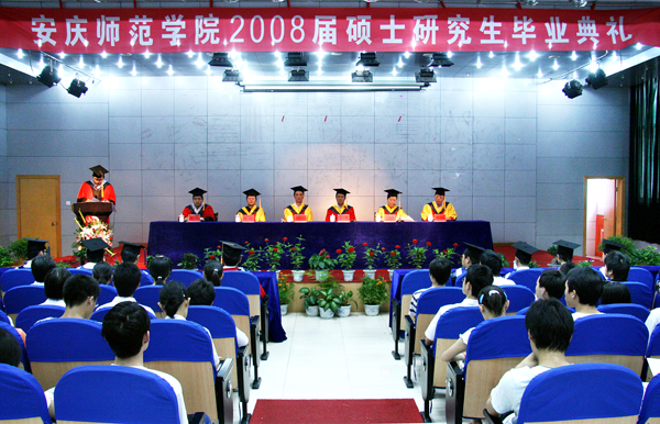 7月1日上午,安庆师范学院2008届硕士研究生毕业典礼在菱湖校区图书馆学术报告厅隆重举行。党委副书记、院长汪青松,党委委员、副院长时新中,党委委员、副院长王海燕,党委委员、纪委书记殷红,党委委员、副院长闵永新,副院长张群等校领导出席毕业典礼,化学化工学院领导和硕士研究生导师,院办、学科建设与研究生教育处等相关部门的负责同志和工作人员,威尼斯官网2008届硕士研究生以及全体在读研究生和部分本科生代表参加了典礼。毕业典礼由党委委员、副院长王海燕主持。