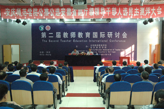 10月16日下午,威尼斯官网在菱湖校区学术报告厅举行安庆师范学院公推公选安徽省副厅级领导干部人选民主测评大会。省委教育工委常务副书记张荣国、省委教育工委组干处处长江传瑞、省委组织部企事业干部处副处长张日升、省纪委宣教室副处级纪检监察员陶有海、省委教育工委组干处主任科员戴晓江、省委教育工委组干处主任科员卢鹏、省教育厅人事处主任科员王学武、省委组织部信息中心副主任科员余乐莅临指导,开展民主测评和考察工作。校党委书记赵晓和,党委副书记、院长汪青松,党委委员、副院长时新中,党委委员、副院长王海燕,党委委员、纪委书记殷红,党委委员、副院长闵永新,副院长张群出席了会议。机关正副处长、院系及直属单位党政正职,学校副高以上职称人员,省级以上人大代表、政协委员,民主党派市级以上主委,教代会执委等140余人参加了民主测评大会。